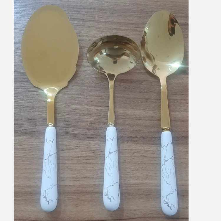کفگیر دسته سرامیکی استیل ملاغه دسته سرامیکی استیل قاشق سالاد دسته سرامیکی استیل