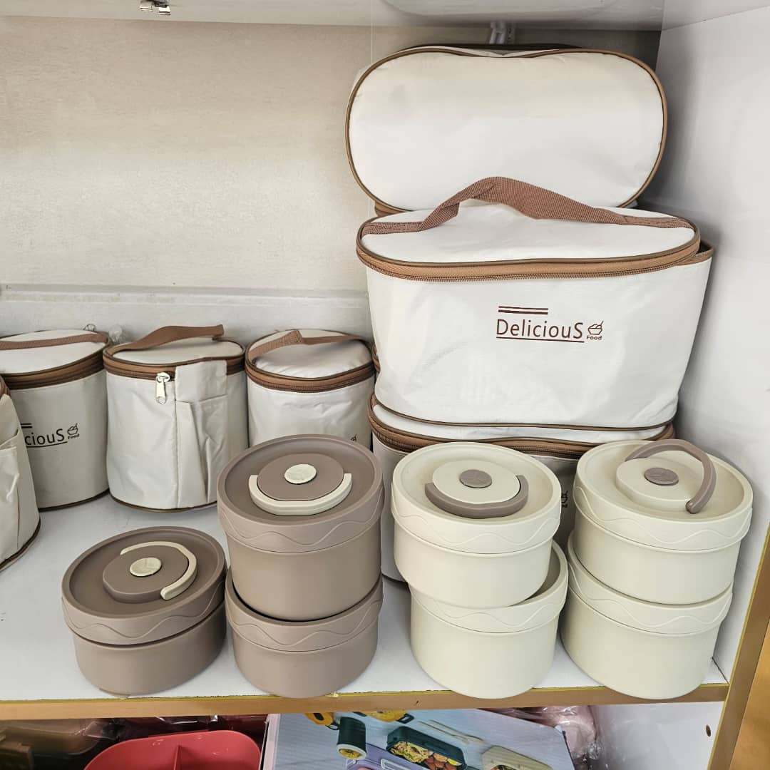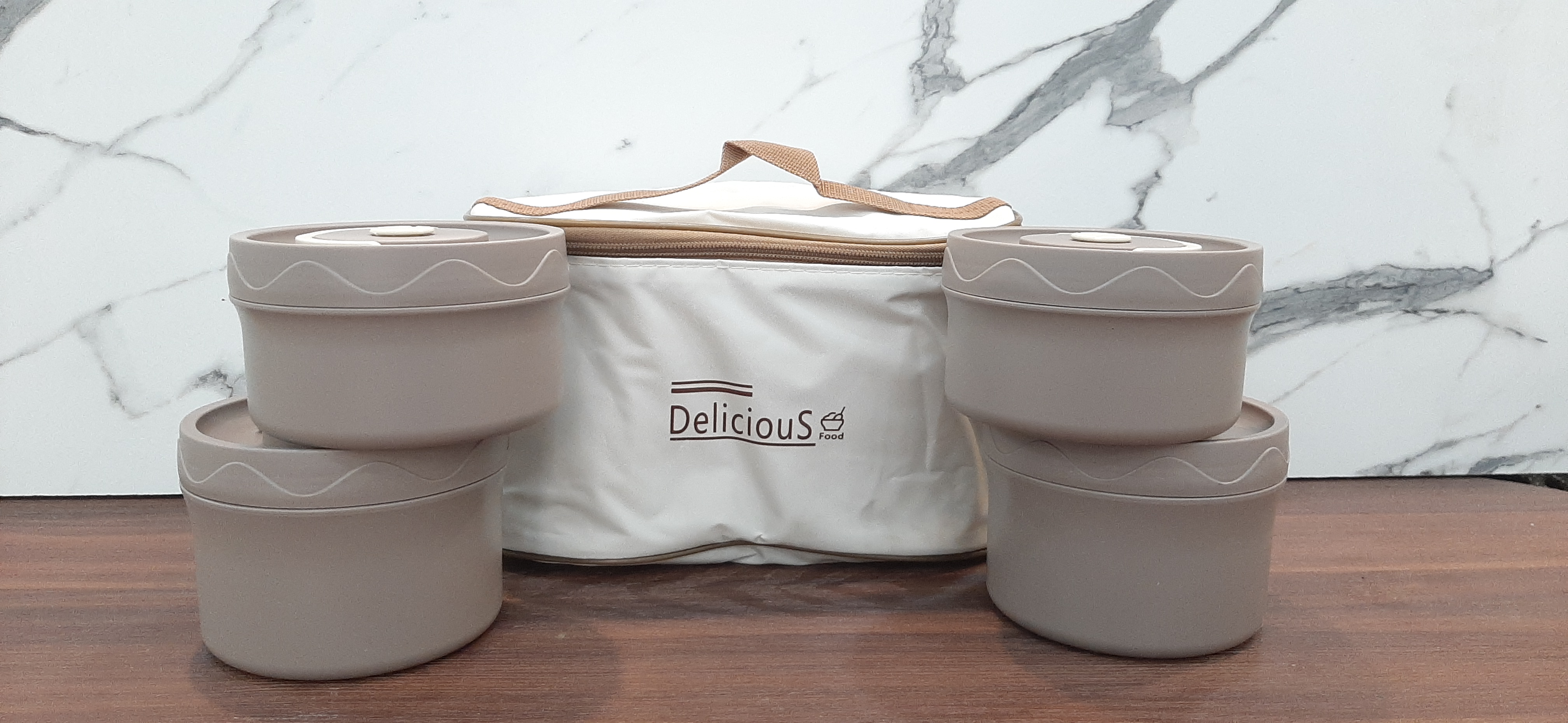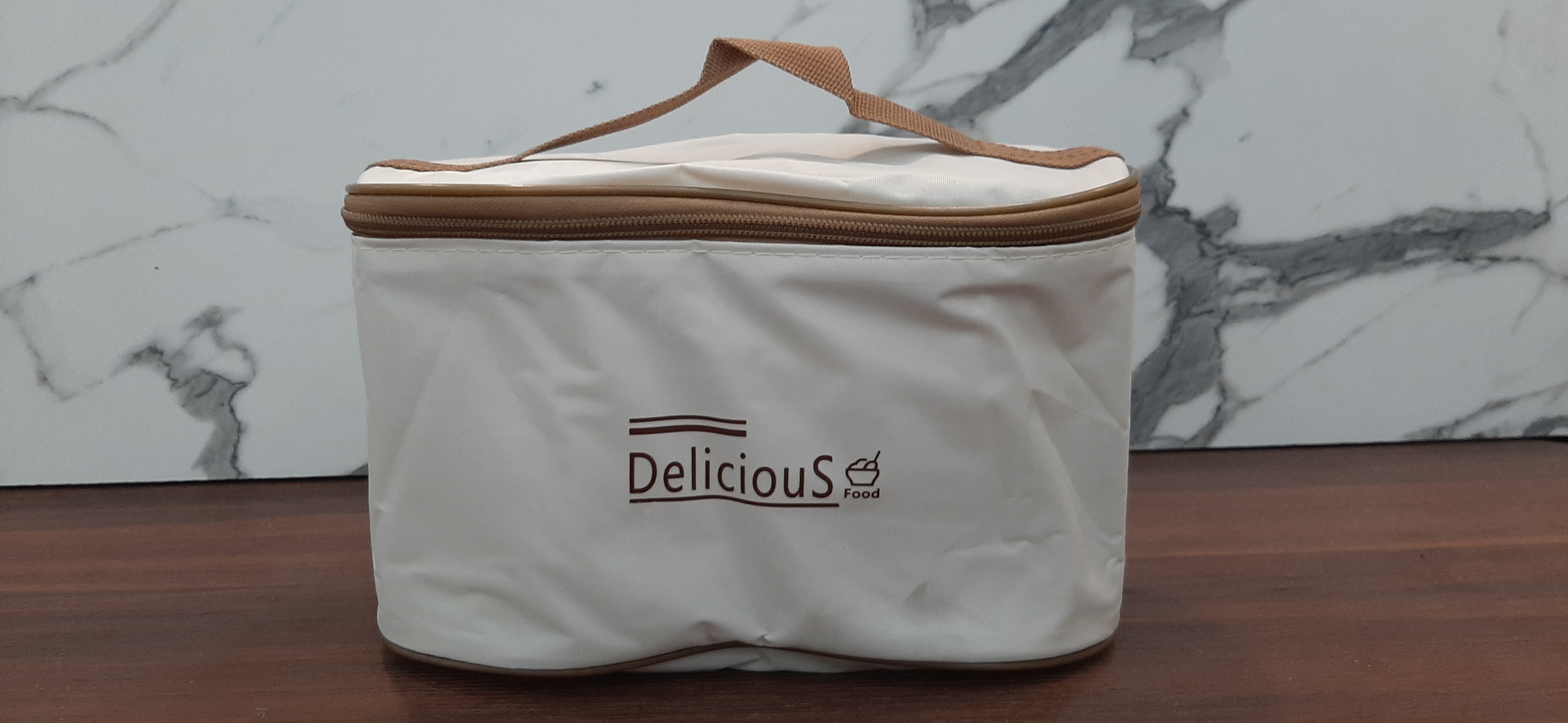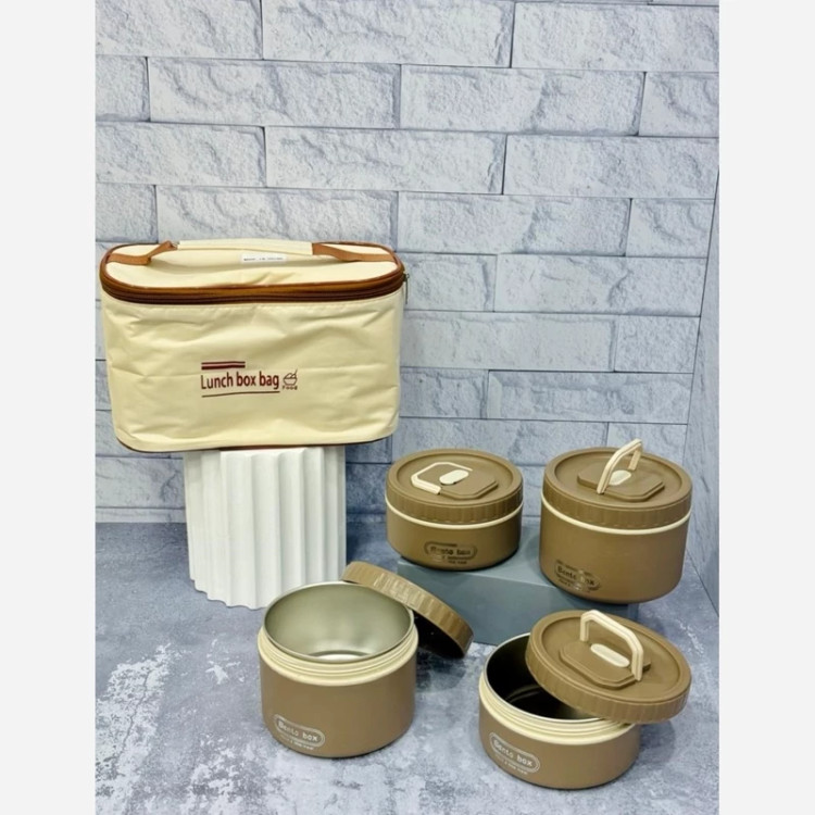 لانچ باکس 4تیکه داخل استیل استیل 304 دارای باکس داخل الومینیوم و بیرون برزنت جنس ظروف فایبرگلاس و داخل استیل استیل جدا شونده جهت گرم کردن و گذاشتن توی فر