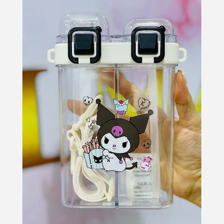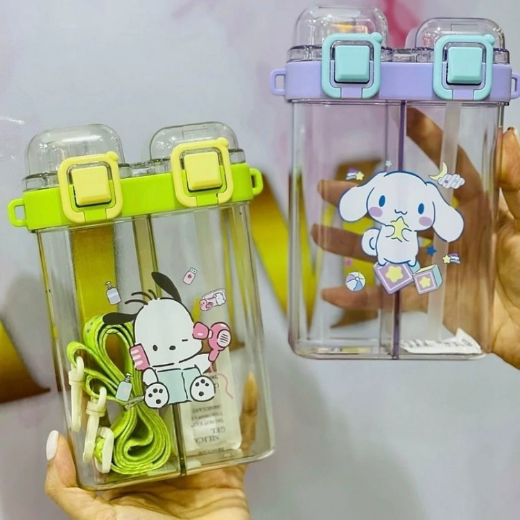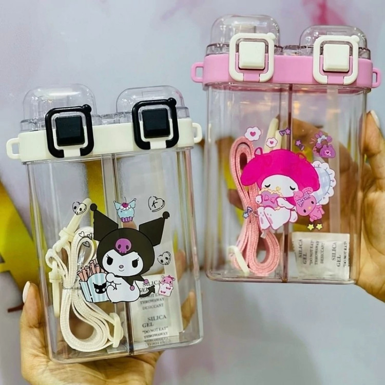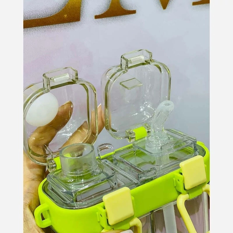 قمقمه دو مخزنه جدید در 4رنگ و 4طرح جذاب اکرولیک و نشکن دارای آسان نوش و نی نوش دارای بند