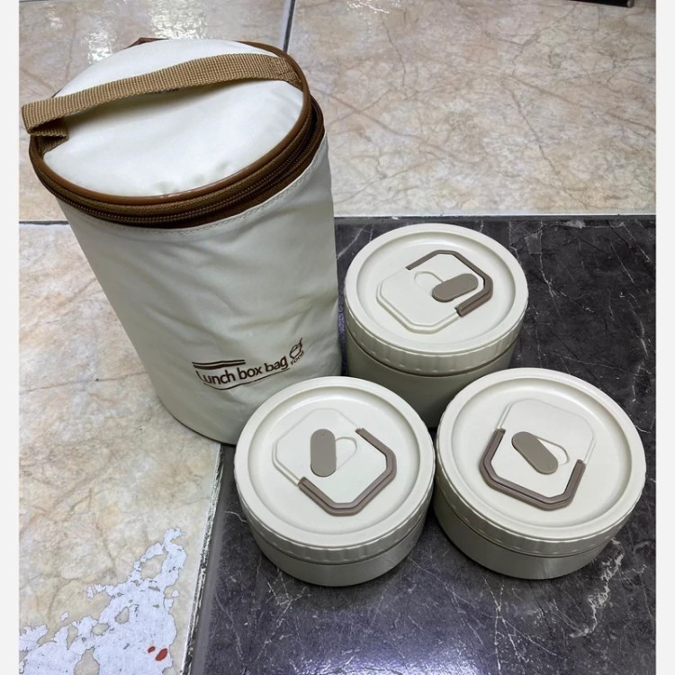 لانچ باکس غذا3تکه جنس داخلی:استیل دوجداره ضدزنگ (گرم و سرد نگهدارنده غذا) قفل محکم ضد نشتی همراه با کیف عایق دما جنس داخلی کیف:آلومینیوم