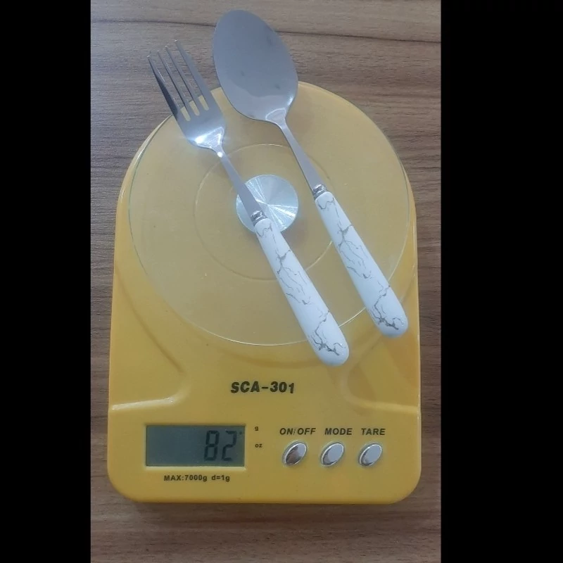 ۶عدد قاشق و ۶عدد چنگال غذاخوری استیل دسته سرامیکی کیفیت درجه یک (رنگ سفید و مشکی)