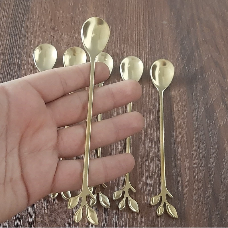 6عدد قاشق شربت فانتزی طرح برگ رنگ ثابت